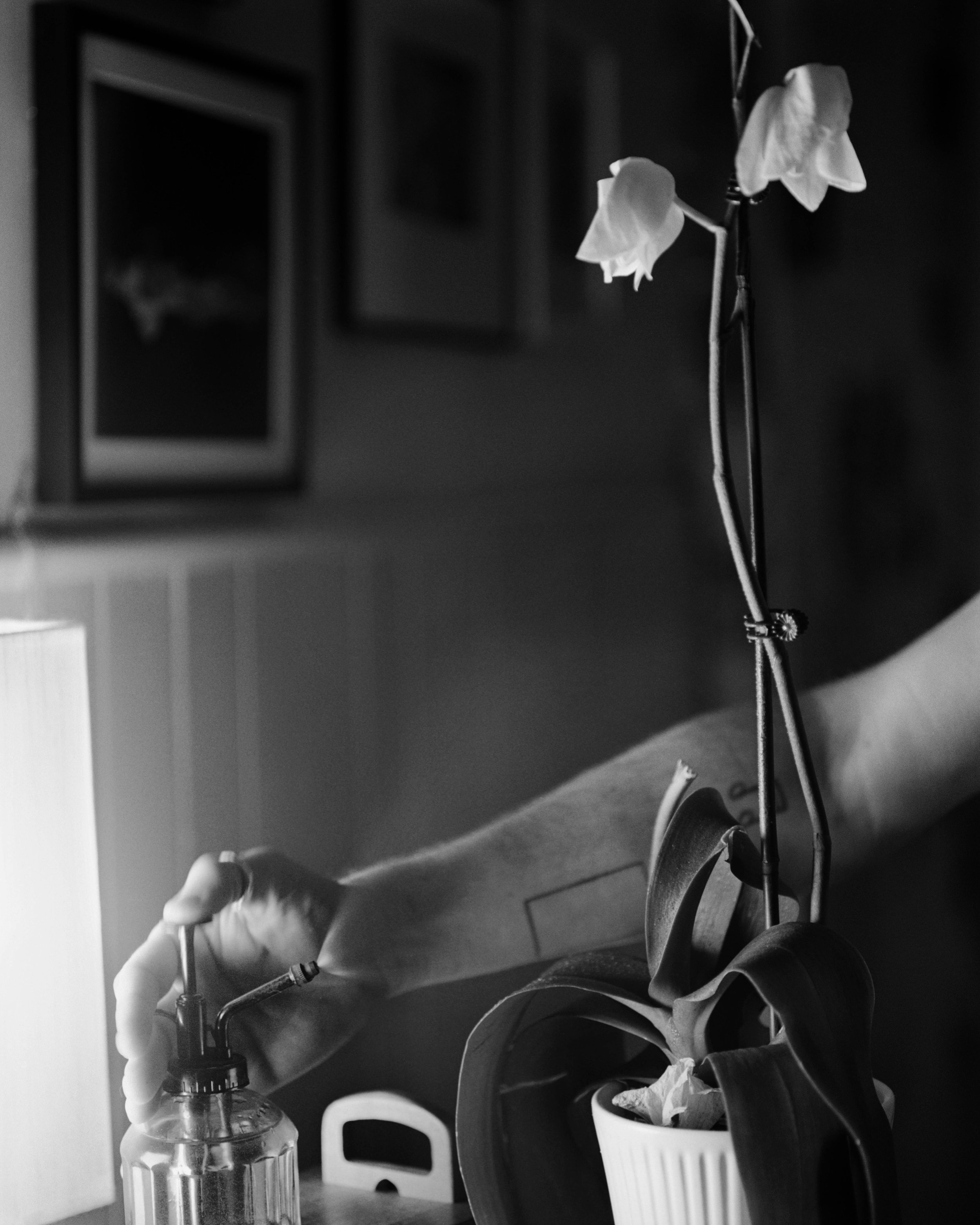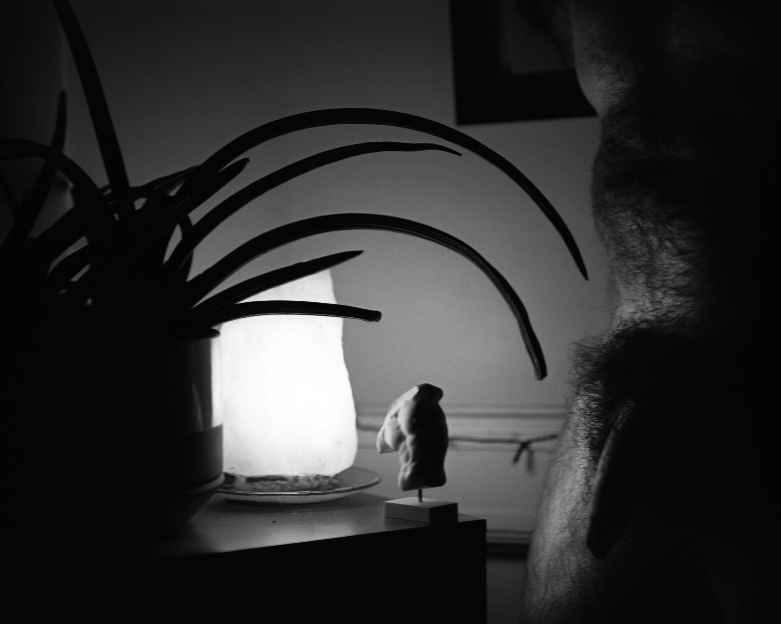 Shooting HP5 @ 1600 for indoor shots at home after work. Just getting back into using the Pentax67 again, focusing on what’s immediate to me. Self portraits, my partner, eventually some of the guys he and I have over, and recreating/capturing our routines and patterns together. Looking for the sweetness and casual comfort.