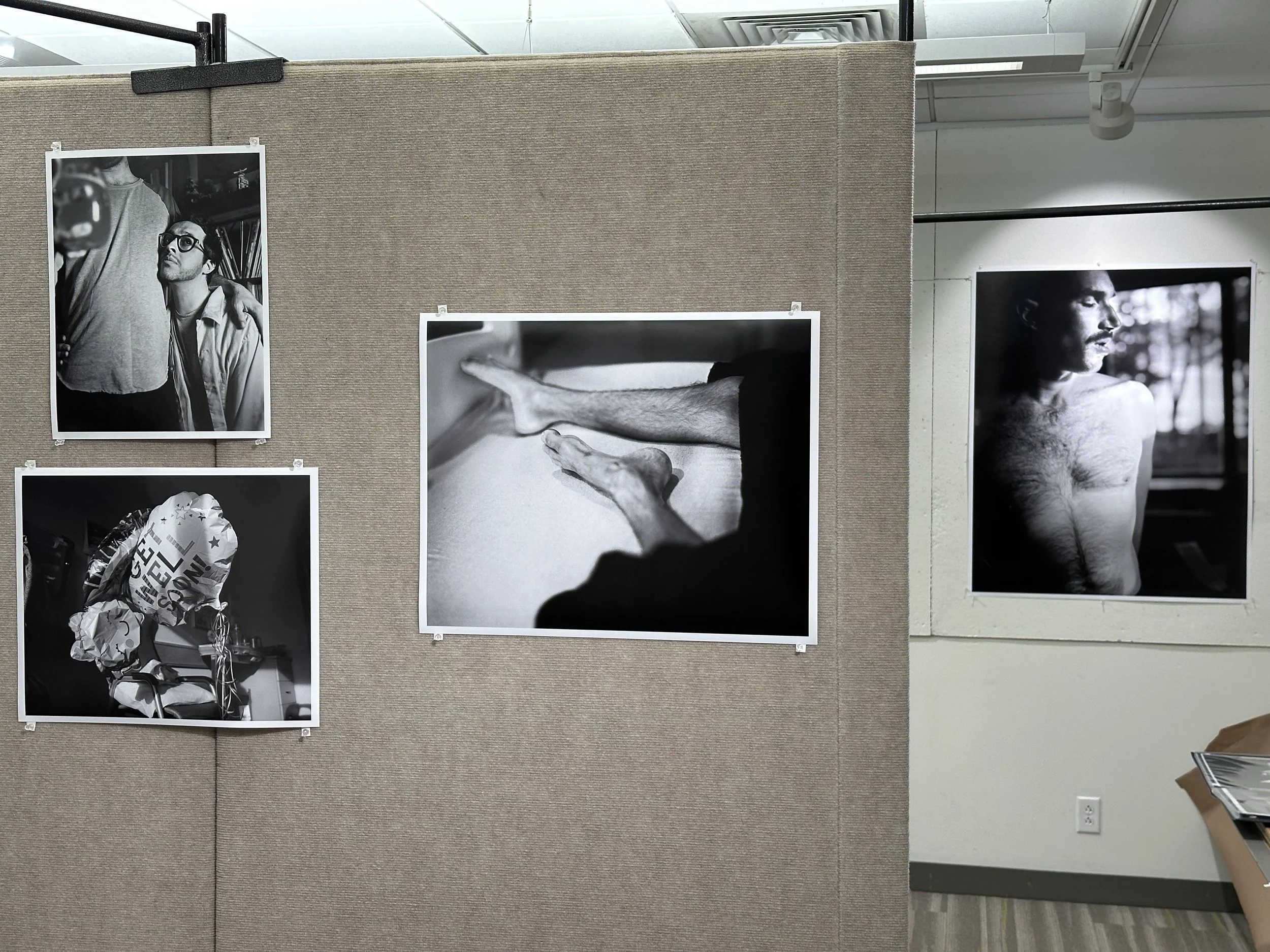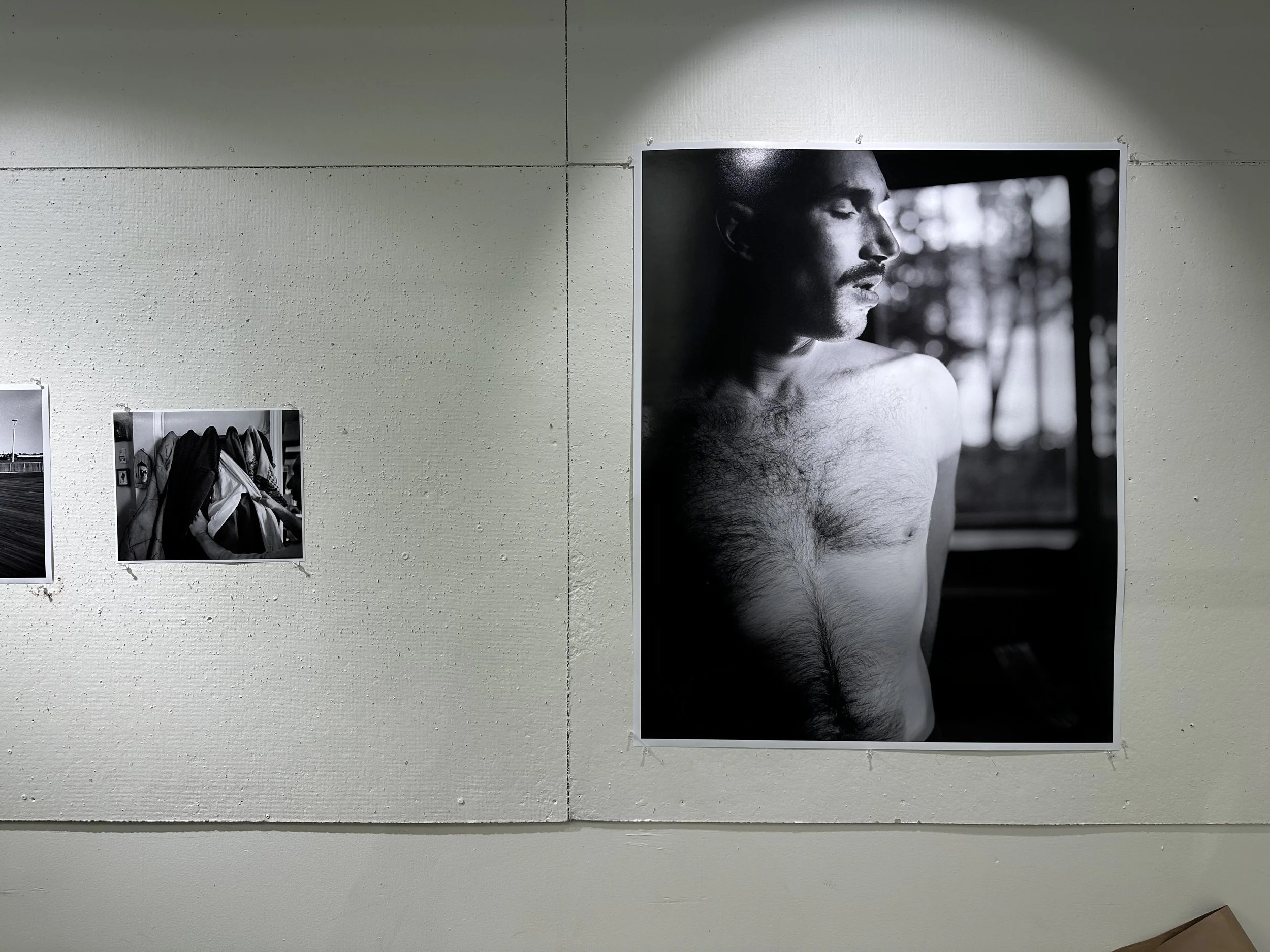 The sequence on the wall of images was gut instinct, which is typically how I handle a first run of sequencing, and I’m really content with how it came out. It began telling the story I think I’d like to be describing with the work inevitably—a book. Or more specifically, a duology. I’d like to produce two book that somehow intertwine each other, or reference one another, while including two thematic narratives. One regarding just Richie and I in our home, and the other the men who enter and enrich it. I have a couple of loose freewrites about it: