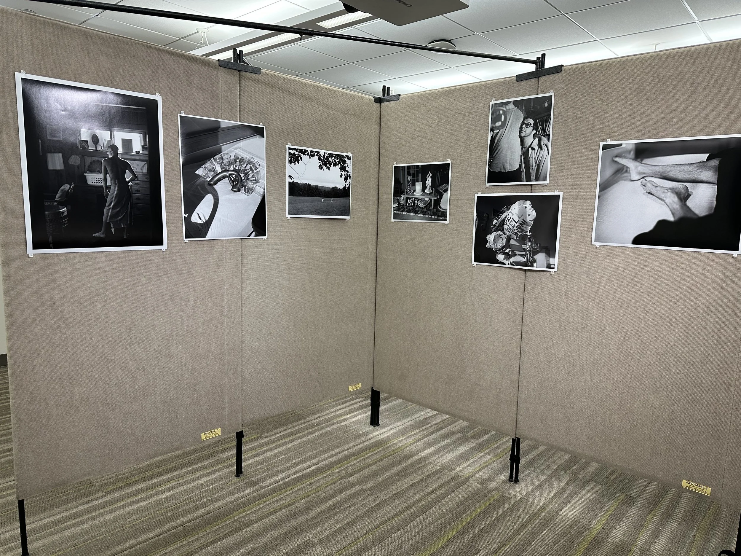My studio space for this residency. I was lucky enough to have a full room to utilize in order to lay out all of my work in a considered sequence. The work on the walls only encompasses the past semester and doesn’t include work from previous ones just due to the sheer amount I had to work with. I also have a video of a walkthrough of the space that better illustrates how the room was structured.